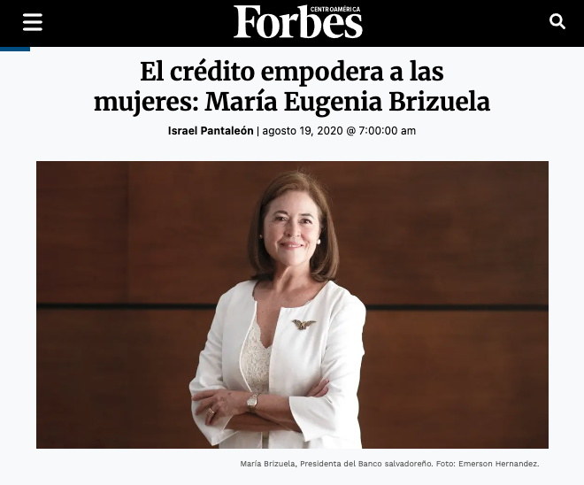 Featured in Forbes: “Credit Empowers Women: María Eugenia Brizuela” (Read)